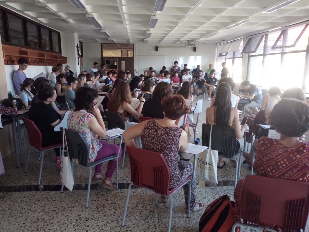 Y esto es lo que han venido a hacer unos 50 jóvenes de todo el Estado. Han decidido restar una semana a sus vacaciones para recluirse en la «Residencia Atalaya» que los P.P.Claretianos tienen junto al Colegio Askartza en Leioa, para que los mejores directores que tenemos en EuskalHerría les enseñen cómo manejar un coro, no sólo a dirigirles ante una partitura sino también a cómo empatizar con los/las coralistas para que estos den el máximo de sus facultades vocales.