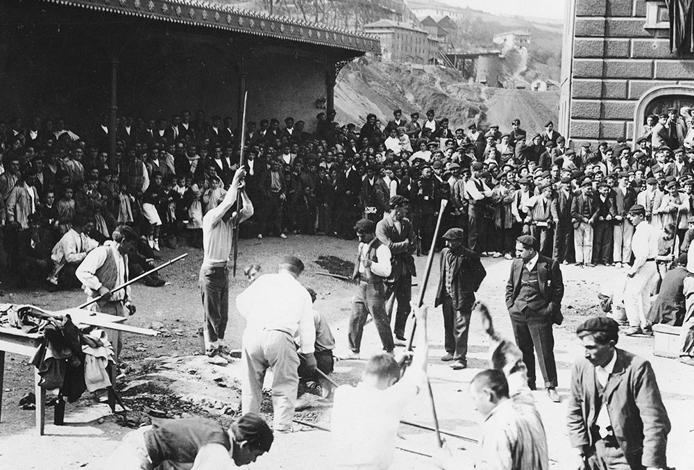 Concurso de barrenadores hacia 1910 en las minas de Triano.