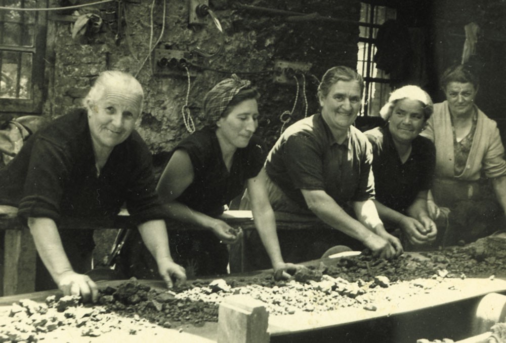Mientras tanto, la madre atendía el fuego de la cocina, preparaba el cocido diario para ellos y sus posibles huéspedes, además de otras labores más duras como cortar los troncos de leña, recoger los restos de carbón o escarabilla que luego iban vendiendo casa por casa, prestar la atención debida a los semovientes que pudiesen tener y cuidar la pequeña huerta con la que completaban su precaria dieta. Sin olvidarnos de que muchas de ellas no tenían otro remedio que ponerse a trabajar fuera de casa, unas en el servicio doméstico en los domicilios de la burguesía bilbaína o la aristocracia de Neguri y Las Arenas, y otras en la propia mina, en los lavaderos de mineral o confeccionando los cartuchos de dinamita que luego utilizaban los barrenadores para hacer las explosiones en la extracción del mineral, cobrando, por el mero hecho de ser mujer, menos que los pinches.